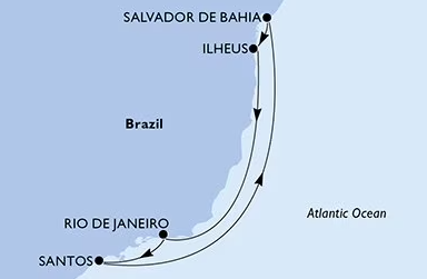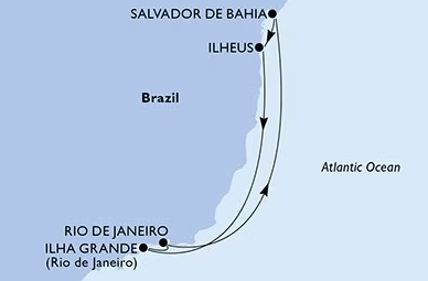 Porto:Ilhéus, BrasilChegada: 08:00Saída: 17:00