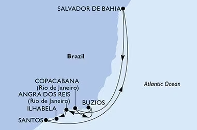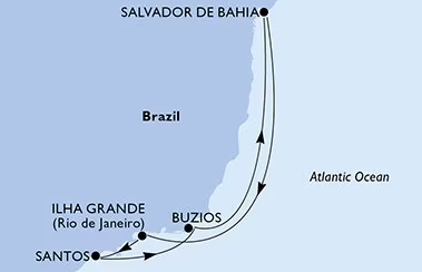 Porto:Salvador, BrasilChegada: 00:01Saída: 17:00